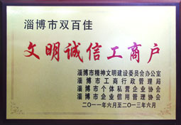 行業(yè)誠信經(jīng)營企業(yè),淄博市文明誠信工商戶,誠實守信,誠信為本。